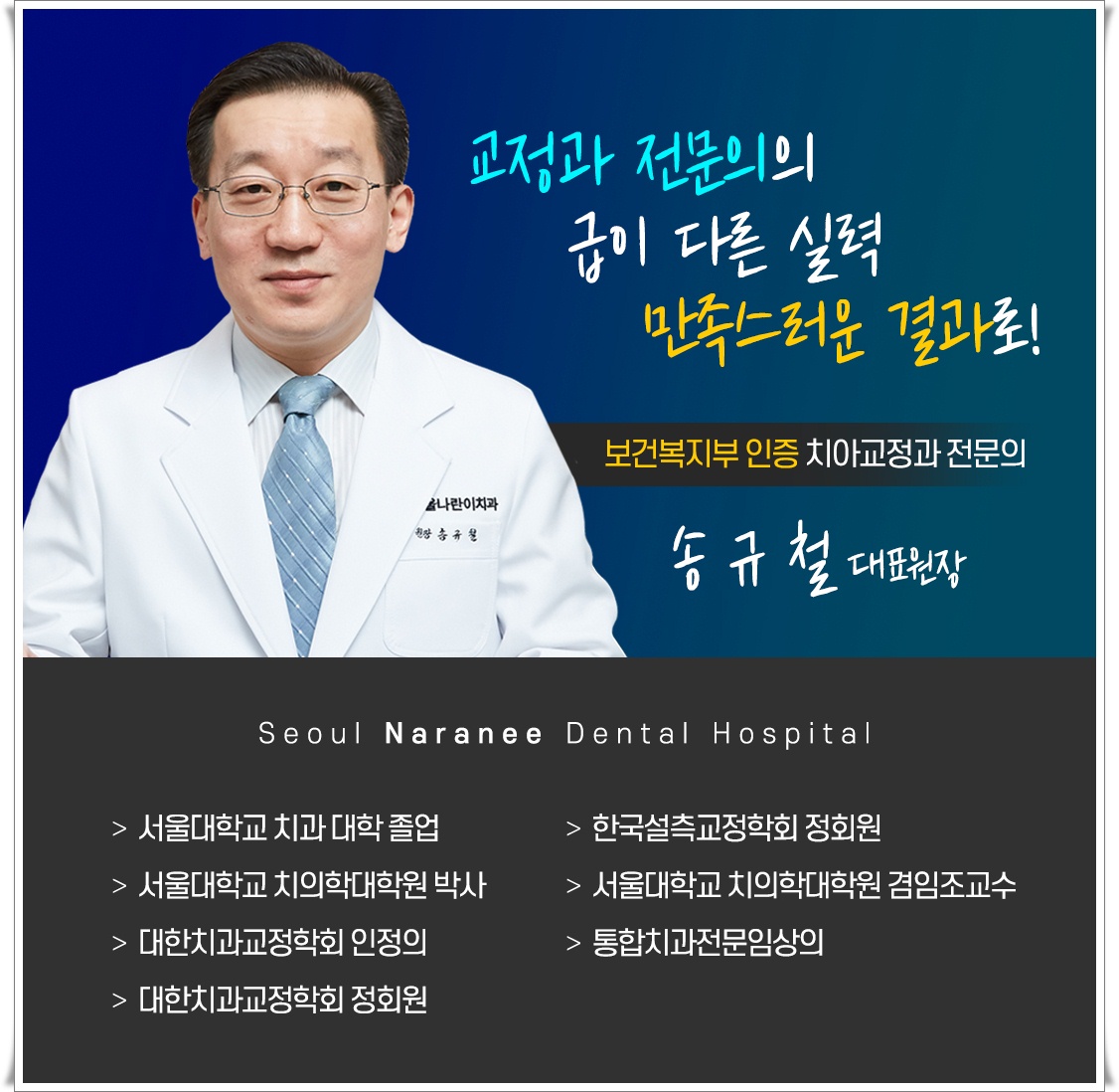 현재 서울나란이치과교정과는 교정만을 전문으로 하는 치과로 낙성대 야간진료 치과로 알려져 있습니다. 상주하고 있는 의료진은 보건복지부에서 인정받으신 치과교정과 전문의 송규철 대표원장님입니다. 이곳에서는 장치 중에서도 고난도의 과정이 필요하다는 설측이나 콤비 또는 데이몬클리어 상황에 따라 재교정이 필요한 분에게도 도움을 드릴 수 있답니다.