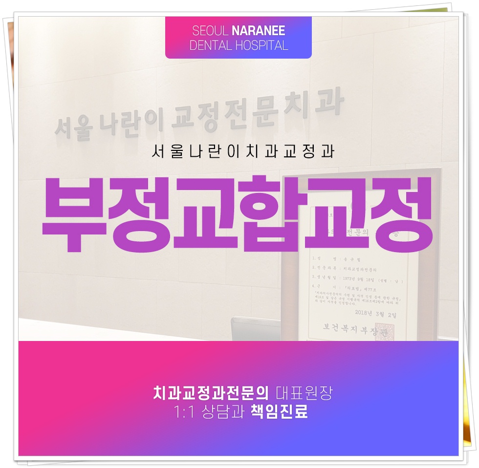 오늘은 서울나란이의 대표원장님과 함께 부정교합원인에 대해 자세히 파헤쳐보도록 할 예정이에요. 부정교합이라 함은 치열이 고르지 못하고 위와 아래, 상악과 하악이 다물었을 때 제대로 맞물리지 않는 증상을 일컫습니다. 본래의 위치에 자리하지 않고, 올바르지 못한 공간에 자라나면서 이가 어긋나 과한 압력을 받게 되어 치아가 비틀어지고 빠지며, 혹은 휘기까지 하는 증상이 나타날 수 있어요.