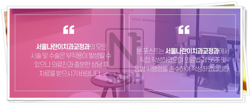 안녕하세요. 서울나란이치과교정과 인사 드려요. 여러분 주말은 잘 보내셨나요? 이번 감염성이 짙은 바이러스가 잠잠해지는가 싶더니 크게 터질 수 있는 일들이 빈번히 일어나고 있어요. 사회적 거리두기가 아직 완전히 끝난 것이 아니니 꼭 주의해주시고, 마스크는 필히 착용하여 감염으로부터 차단해주시길 바래요.