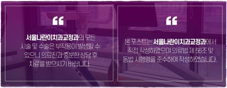 오늘 이렇게 교정 중 피해야 할 음식에 대해 설명해드렸는데요. 좋아하던 음식일지라도 건강한 교정 과정을 진행해보기 위해 조금만 참아보시는 것은 어떨까요? 보건복지부에서 인정받은 치과교정과 전문의 대표원장님께서 직접 진료 보는 ‘서울대 야간진료 치과 서울나란이’에서 알려드린 정보였습니다. 감사합니다.