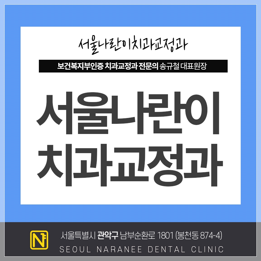 서울대입구역 근처에 위치하고 있는, 서울나란이치과교정과치과의원 인사드립니다.