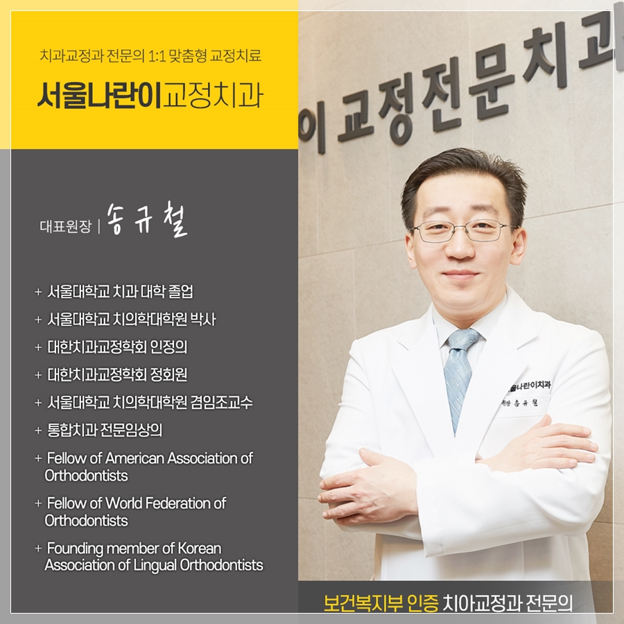 서울나란이치과교정과치과의원은 대표 원장님이 보건복지부 인증 교정과 전문의이십니다. 그렇기에 치아교정에 대한 다양한 임상경험을 보유하고 있습니다. 또한 원장님이 원스톱 진료를 실시하고 있어 교정치료를 받는 중에 다른 의료진으로 교체될 일은 없습니다.