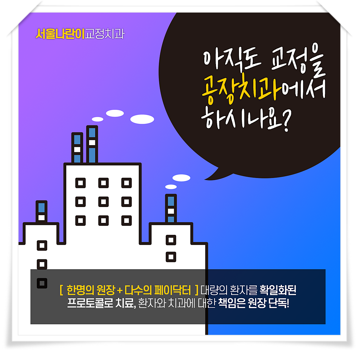 미소를 띠지 않는 얼굴이 부정적 평가를 받듯이 고르지 못한 치열은 상대방으로부터 깔끔하지 못하다거나 산만해 보이는 인상을 줄 수 있는 것이죠. 이 때문에 상당한 콤플렉스가 되며, 성격까지도 내성적인 성격으로 변하는 경우도 있습니다.