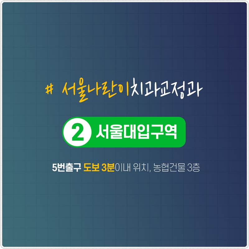 본원의 의료진은 환자와의 원활한 의사소통을 통해 만족스러움은 높이고, 걱정은 낮추어드립니다. 보건복지부가 인증한 치과교정과 전문의가 상담에서부터 진료, 에프터케어까지 책임지고 진료하는 서울나란이치과교정과는 서울대입구역 5번 출구에서 도보로 3분 이내이며 화요일은 저녁 8시 30분까지 야간진료도 시행하고 있으니 방문하셔서 상담을 받아 보시기 바랍니다.