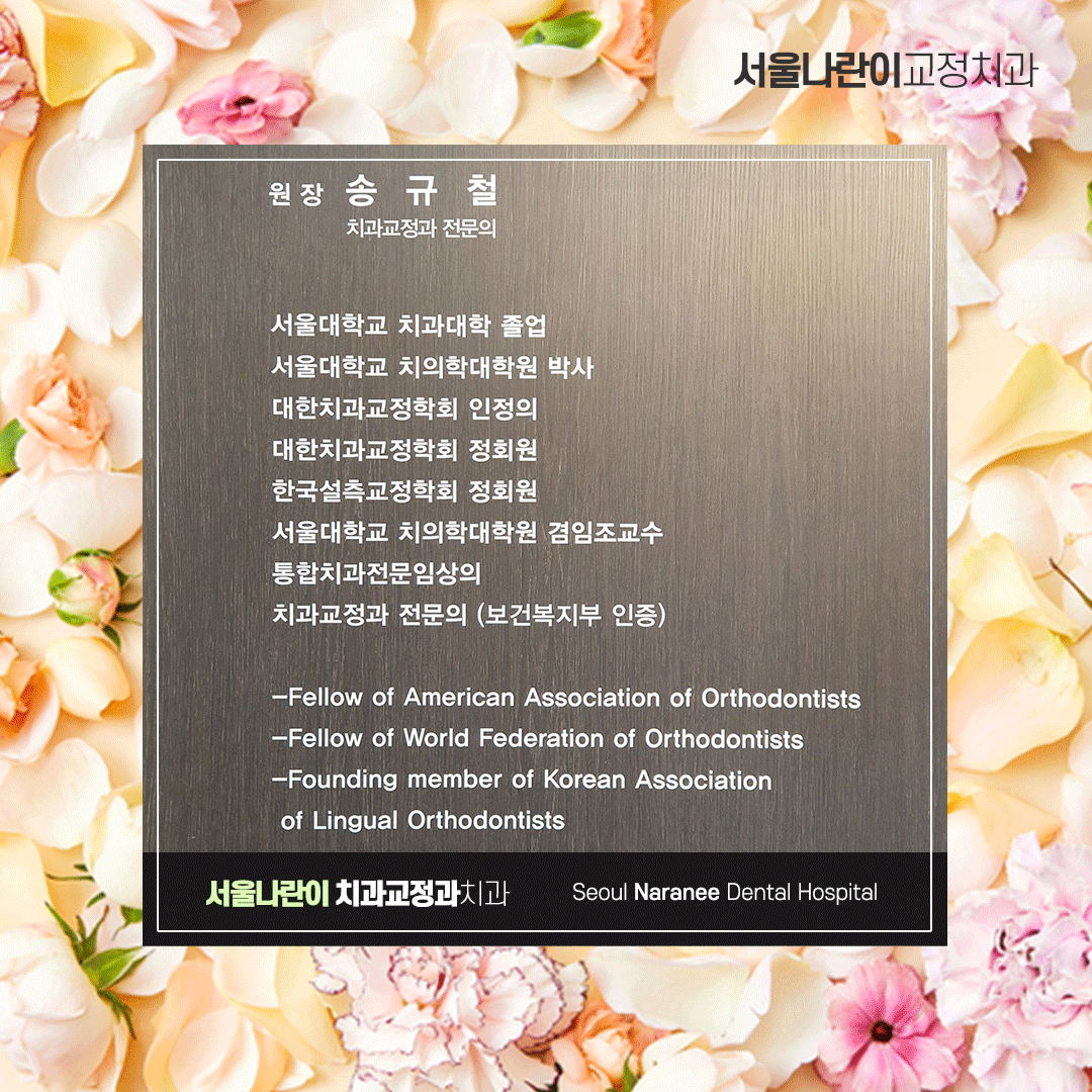 사실 어른들이 치아교정을 하는 이유는 심미적인 목적도 있지만 중장년으로 넘어가면 잇몸의 노화로 치열이 무너져 교정치료를 하는 경우도 있습니다. 연령, 교정 목적에 따라 관계없이 누구든 교정전문치과를 방문해 상담 받고 교정치료를 받아볼 수 있죠. 교정치료는 어디까지나 구강구조를 바르게 잡아주는 진료과목입니다.