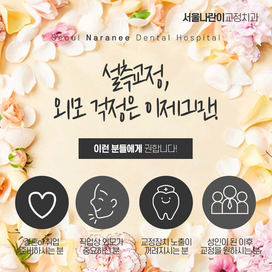 서울나란이치과 교정과는 설측교정전문치과로 잘 알려져 있죠. 그 중 설측교정을 이용한 콤비교정도 인기가 많습니다. 콤비교정은 바깥쪽 장치와 설측 장치의 장점을 극대화 하고 단점을 보완하여 두 가지 방법을 동시에(combination) 사용하는 치료 방법입니다.