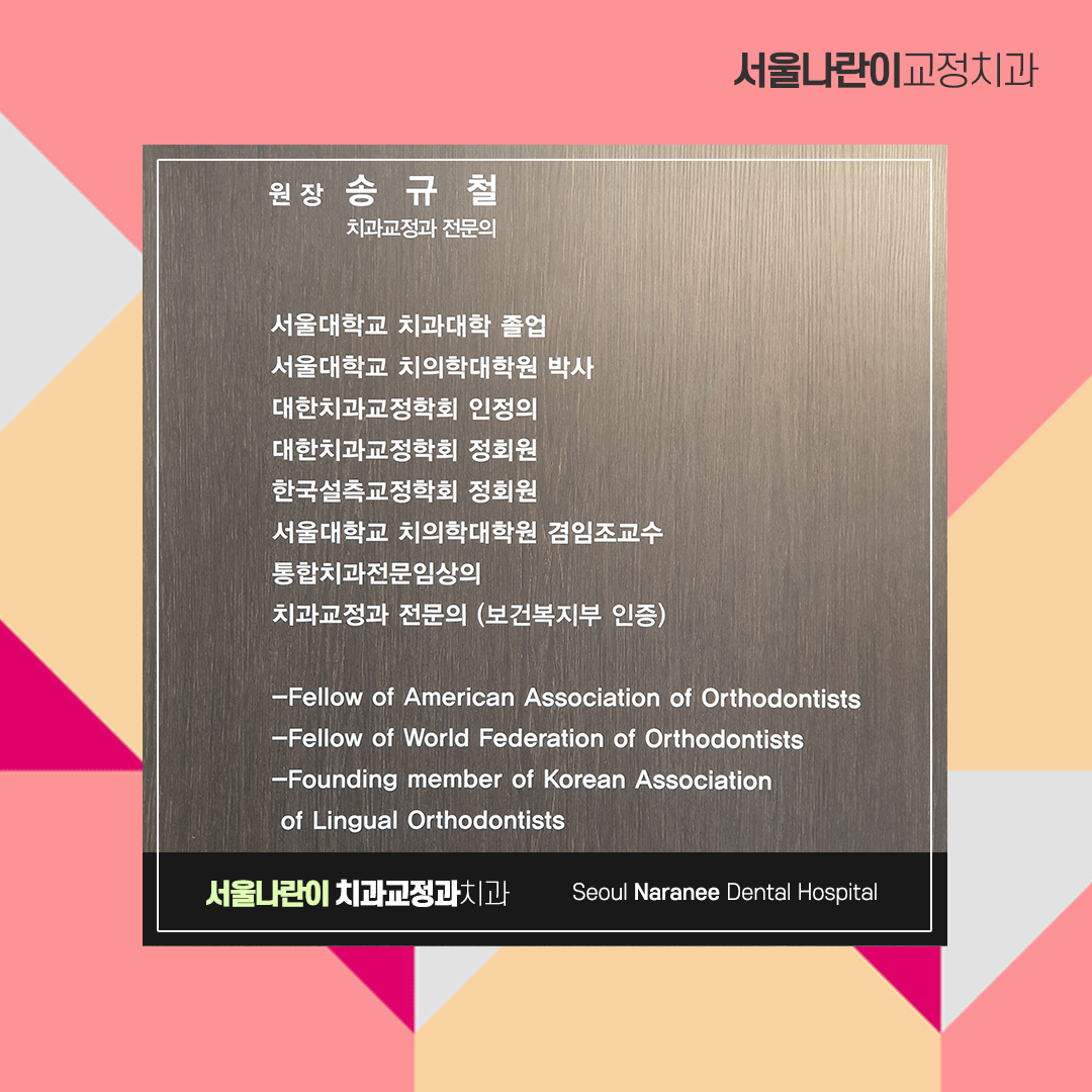 2호선 서울대입구역 부근에 위치한 서울나란이치과 교정과 의원은 교정과 전문의 원장님께서 직접 1:1 진료를 하고 있기때문에 도중에 의료진이 변동될 일이 없으며 보건복지부가 인증한 교정과 전문의로 안심하고 교정치료에 집중할 수 있는데요. 교정전문치과기 때문에 환자의 구강상태와 환경적인 부분을 고려해 맞춤 플랜을 수립해 드릴 수 있으므로 사소한 니즈나, 원하는 목표까지 설정해 방문하시면 좀 더 원활한 교정치료 상담이 진행될 수 있겠습니다.