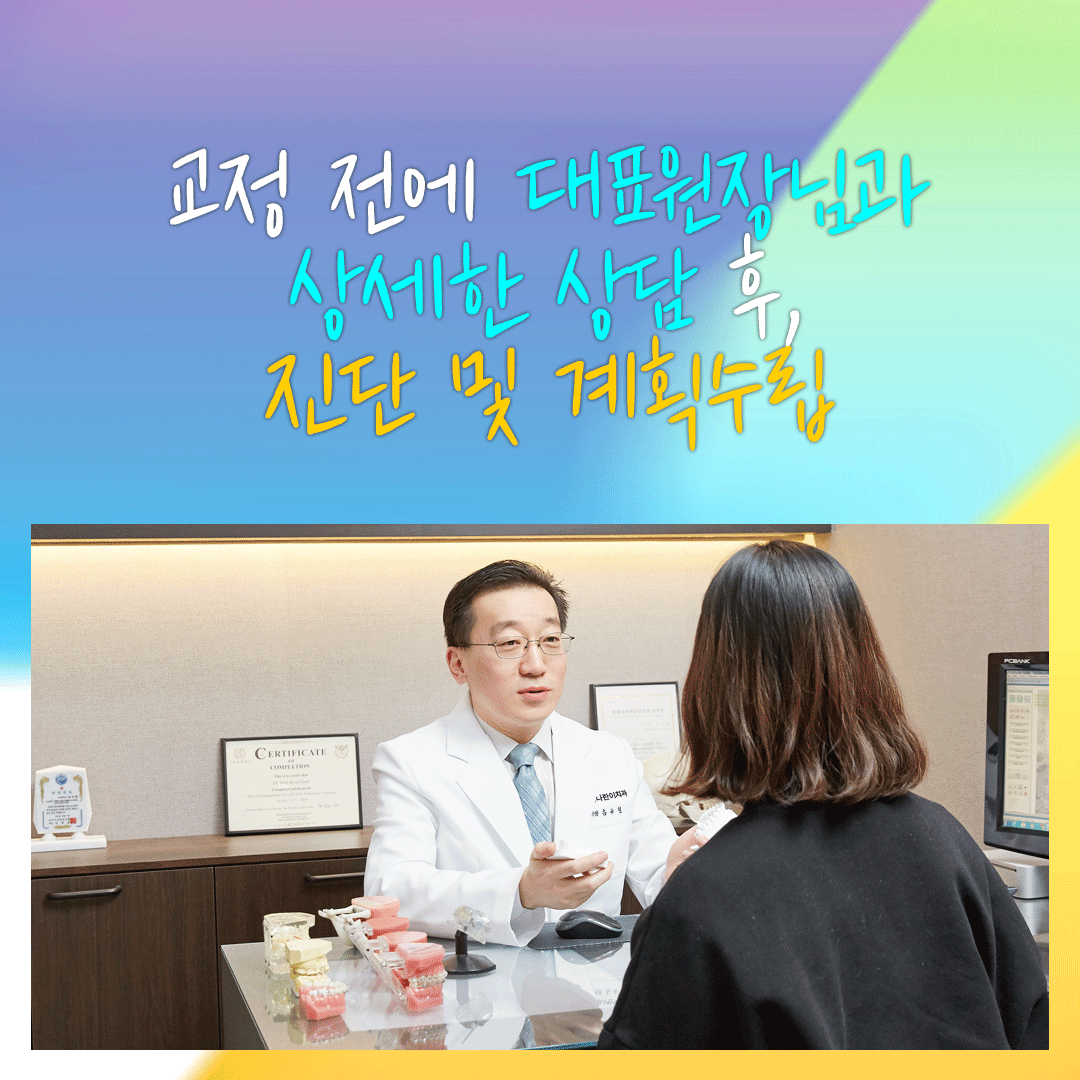 설측교정이 난이도가 높기 때문에 콤비교정 역시 난이도가 높은 편인데요. 설측교정을 포함해 두 장치를 조율하여 교정치료를 진행하기 때문에 교정과 전문 의료진의 실력이 뒷받침 되어야 합니다. 콤비교정은 심미성과 경제성을 만족시키는 효율적인 교정장치이지만 더 만족스러운 결과를 얻기 위해서는 다양한 교정 경험이 많은 실력있는 전문의에게 받는 게 바람직한데요. 어떤 장치로 교정 할거야! 마음 먹고 오기보다는 나에게 맞는 교정장치가 어떤 게 있는지, 또 그 장치를 내가 이 치과에서 이용해볼 수 있는지 등을 고려해 교정플랜을 수립하는 게 좋습니다.
