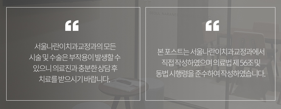이런 판단은 스스로 하기 이렇다. 기 때문에 치과교정과 전문의의 상담을 통해 진단받는 게 좋습니다. 주걱턱과 같은 반대교합도 수술없이 치아교정만으로 해결할 수 있는 경우가 있지만, 본인에게 적합한 방법이 아니라면 오히려 부작용을 낳을 수 있으니 주의해야 하는데요. 교정과 전문의 원장님과의 정밀한 상담 후에 본인의 반대교합 증상을 진단한 후 적합한 방법으로 치료해보는 플랜을 수립해야 합니다.