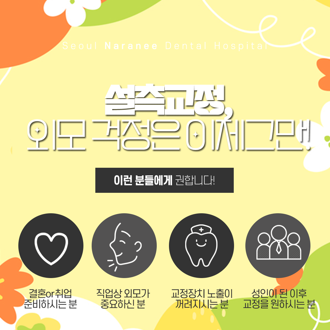 많은 분들이 치아교정을 심미적인 이유로 시도하는 분들이 많은데요. 하지만 골격적인 부조화를 잡고 구강의 기능을 회복시켜주는 이 방법은 구강건강을 위한 엄연한 치료과목입니다. 보통은 치아교정은 영구치를 맹출하기 전 6~10세에 실시하는 것이 보편적이지만 이러한 교정 시기를 놓치게 되는 경우가 다반사인데요. 특히 40대 이상의 일부 중장년층은 치주인대 등 구강 상태 노화가 발생하면서 치아교정 자체가 어려울 것으로 판단하여 교정에 대한 생각을 접기도 하지만 40대 이상의 중장년층에서도 치아교정이 필요한 경우가 발생할 수 있습니다.