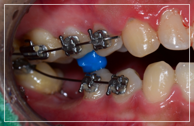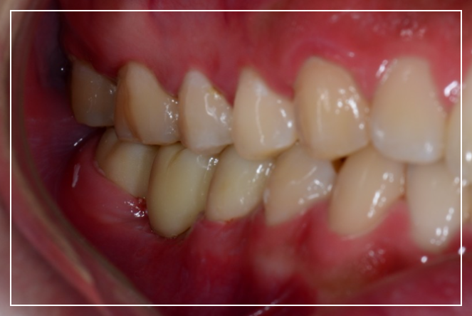 이럴 경우에는 어금니 쪽을 부분교정을 진행해 바른 위치에 위치할 수 있도록 교정해주는 게 좋은데요. 쓰러진 치아에 보면 치석이 쌓인것을 볼 수 있죠. 치아가 쓰러지게 되면 치석이 잘 생길 수 있어 염증의 원인이 될 수 있습니다. 이후 부분교정이 완료되면 임플란트 식립할 자리를 확보해 임플란트를 정상적으로 식립할 수 있습니다.