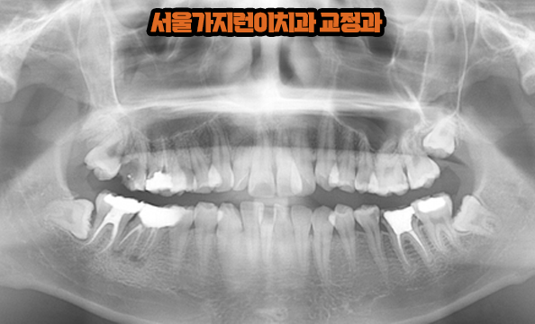 안녕하세요? 서울가지런이치과 교정과 의원입니다. 위 사진은 실제로 저희 치과를 다녀간 환자분의 엑스레이 사진인데요. 보면는 위아래로 사랑니가 나있는 걸 확인할 수 있습니다. 아래의 경우 옆으로 누워있게 났기 때문에 일반적인 치아교정을 했다고 한다면 발치하고 교정을 진행했겠죠. 하지만 사랑니의 모양도 양호한데다 똑바로 세우게 된다면 어금니 역할을 충분히 할 수 있다고 판단이 되었기 때문에 임플란트 대신 치아교정을 통해 구강저작력을 높여볼 수 있었습니다.