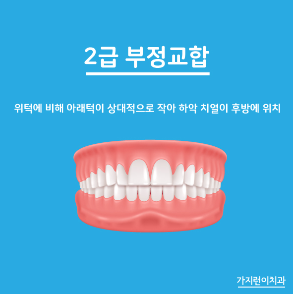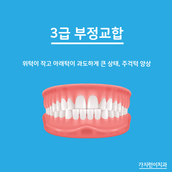 이 부정교합도 단계별로 치료가 진행되고 있는데요. 1급의 경우 골격적인 문제는 없지만 치아간의 간격이 보이는 등의 비교적 가벼운 증상을 보입니다. 2급의 경우 하악 치열이 후방에 위치해 돌출입, 무턱과 같은 증상이 관찰되는데요. 3급의 경우 주걱턱 증상이 보일 수 있습니다. 특히 3급의 경우 골격적인 문제는 없는데 치아가 거꾸로 물리는 증상을 확인해볼 수 있는데요. 꼭 이런 증상이 아니더라도 덧니나 치아가 겹쳐나는 경우에는 나중에 풍치로 고생할 수 있기 때문에 미리 확인해보고 치아교정을 통해 예방차원의 치료를 받아볼 수 있겠습니다.
