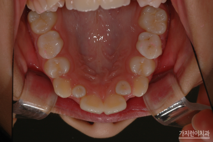 치아가 맹출하는 순서상 송곳니가 가장 마지막에 맹출하기 때문에 송곳니 자리에 덧니가 많이 생기는데요. 이렇게 덧니가 생기게 되면 위의 사진에서 보이는 악궁확장장치를 이용하여 입 천장의 뼈를 좌우로 벌려 덧니가 올바로 자리를 잡을 수 있는 공간을 확보하여 진행하게 됩니다. 이런 덧니는 빈번하게 일어나는 현상인데요. 유치가 빠지지 않는 맹출장애의 경우도 치과를 방문해 검진을 받아보는 게 좋습니다.