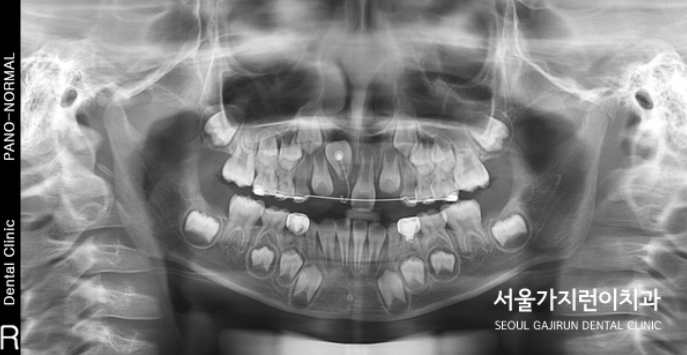 위 사진을 보면 달라진 모습을 확연하게 확인할 수 있었습니다. 치근 흡수 없이 가지런한 치아배열이 완성이 되었는데요. 비교적 8세의 나이에 일찍 발견하여 교정을 진행해 좋은 결과를 얻을 수 있었습니다. 만약 매복된 치아가 잇몸뼈와 유착이 심했다면 결국 치아가 내려오지 않았을 수도 있었는데요. 어린 나이에 발견해 유착 가능성이 낮은 탓에 온전한 자리를 찾아볼 수 있게 되었습니다. 상악 중절치와 매복을 비롯한 맹출 장애는 혼합치열기에 흔하게 발견할 수 있는데요. 유치 빠지고 영구치가 나는 시기에 교정치과를 찾아 검진해보면 바르게 성장하고 있는지를 체크할 수 있으니 성장기의 자녀가 있는 가족이라면 유심히 체크해보는 것도 좋겠습니다.