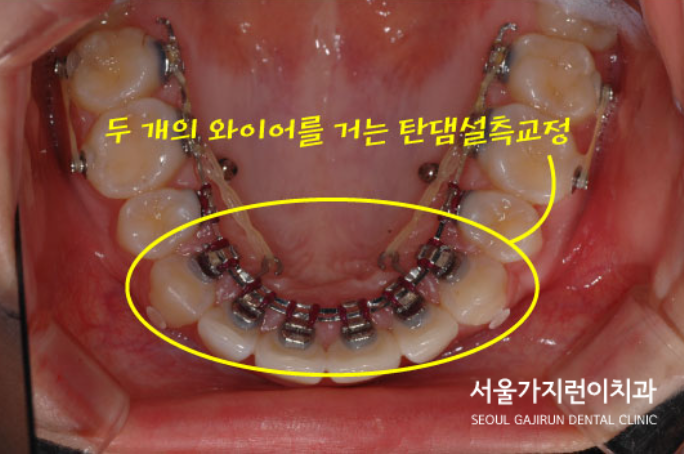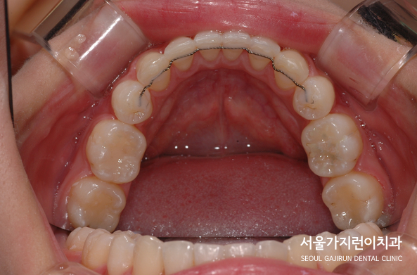 하악 역시 어금니의 교합이 정상적으로 맞춰지는 것을 확인하고 미니스크류를 식립해 진행했습니다. 이후 발치 공간을 닫아주기 위해 탄댐설측교정을 진행했는데요. 윗니는 설측교정으로 아랫니는 순측교정으로 콤비교정을 진행했는데요. 두 개의 와이어를 거는 탄댐설측교정으로 옥니를 방지해 치아교정을 진행했었습니다.