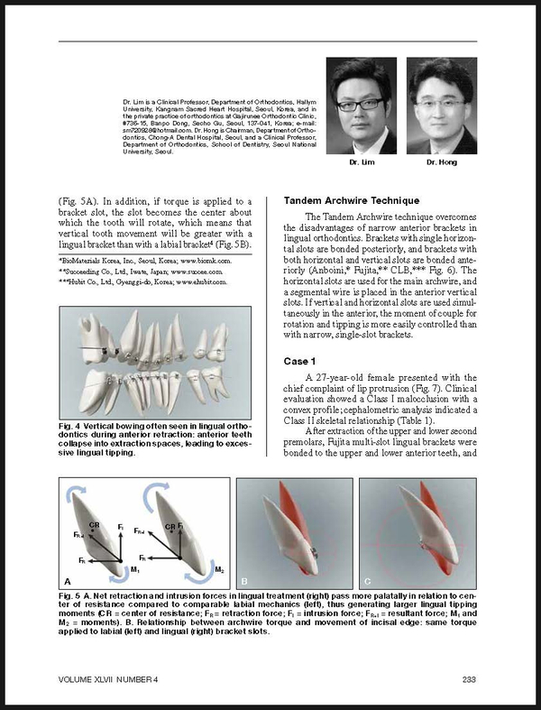 본원에서는 <탄댐 아치와이어 테크닉>을 통해 설측탄댐교정과 탄댐 아치와이어 테크닉으로 3차원 치아이동이 가능했는데요. 환자분의 경우 상악 전치를 후방으로 당기기 위해 두 개의 와이어로 충분한 힘을 줄 필요가 있었습니다. 특히 환자분의 경우 가급적 교정용 장치가 보이지 않는 것을 선호하셨는데요. 본원에서는 해당 테크닉을 가지고 10년 이상 진행하면서 얻은 임상결과를 토대로 발표한 논문도 있는만큼 환자분께 충분한 고지 후 교정을 진행하기로 결정했습니다.