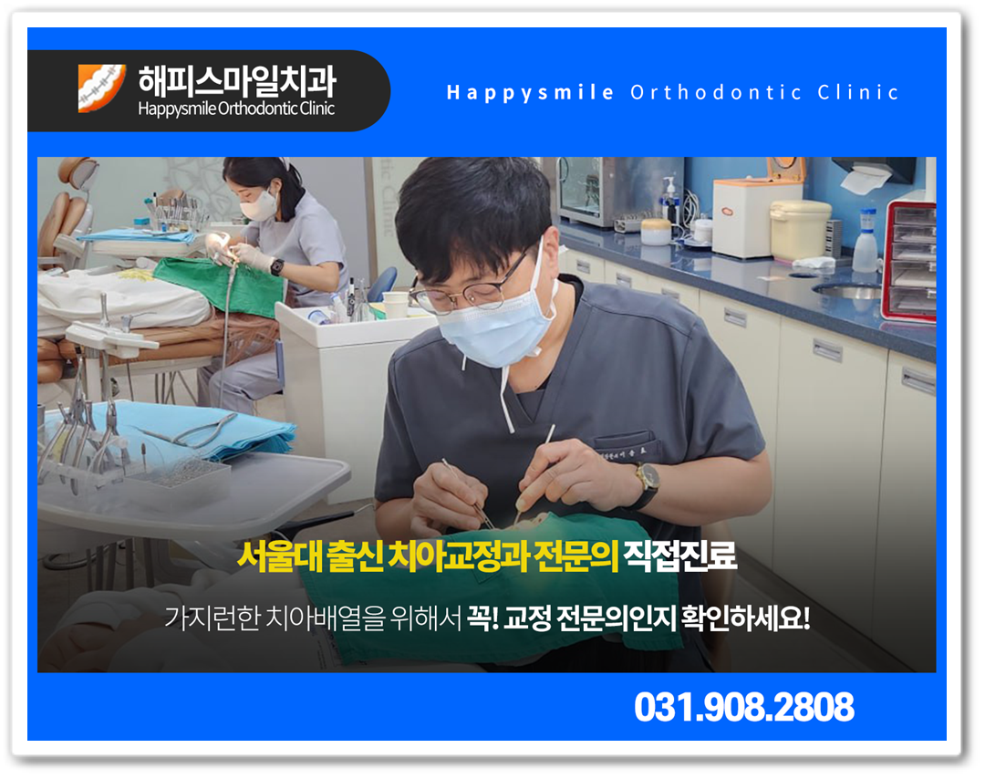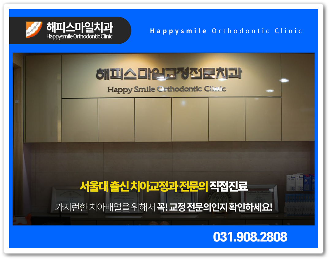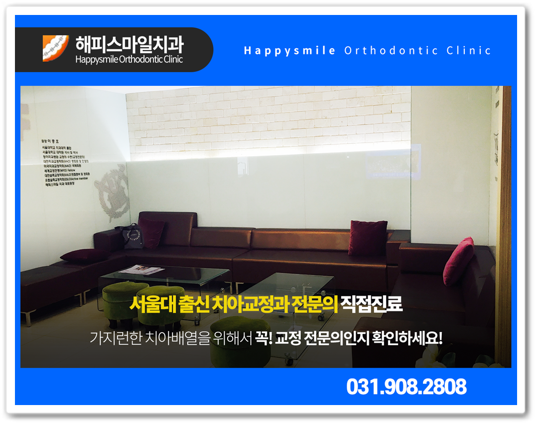 일산치아교정 진행하고 있는 일산치아교정치과 해피스마일치과 의원은 10년이 넘도록 한 곳에서 오직 교정치료만을 전문적으로 하고 있는 치과입니다. 그동안 많은 환자 여러분들의 추억들을 함께 하고 있기도 한데요. 딱딱한 병원의 느낌이 아닌 포근하고 가족같은 치과가 되기 위해 도움을 드리고 있습니다. 본원의 대표원장님께서는 서울대 치과대학을 졸업한 치아교정 전문의십니다.