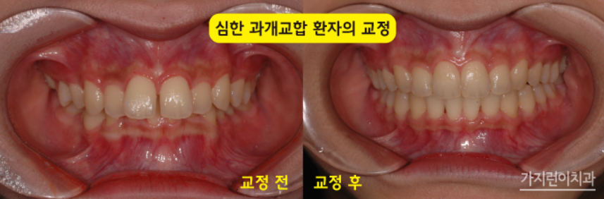 환자분의 경우 과개교합도 문제였지만 사실 턱관절에도 불편함을 호소한 케이스였는데요. 상악 전체를 후방으로 이동시켜야 했기 때문에 힘을 줄 수 있도록 미니스크류를 사용하였고 치아의 벌어짐까지 개선해 치아교정 후에는 턱관절에 가중되던 불편함 마저 개선되었다고 하셨습니다. 심한 과개교합의 경우 턱의 성장과 연관되어있기 때문에 반드시 신논현역 교정전문치과를 찾아 상담을 받아보는 게 좋습니다.