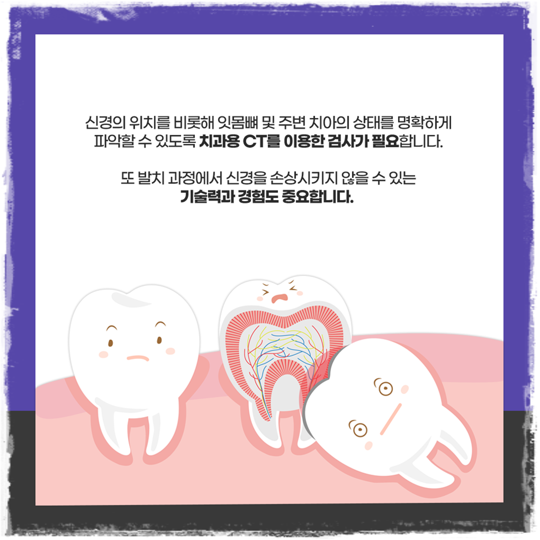 많은 사람들이 사랑니 발치 통증 때문에 분당사랑니 검진을 미루는 경우도 있는데요. 마취를 하고 진행되는 만큼 당시 통증에 대한 부담을 덜어내 볼 수 있고 이후 마취가 풀리기 전에 진통제를 미리 복용하는 과정을 통해 도움을 받아 볼 수 있습니다. 혹시라도 주변에 염증이 생기거나 주변 치아를 밀어내면 통증이나 과정이 복잡해질 수도 있습니다. 그래서 필요에 따라 발치를 할 수 있도록 의료진의 진단 하에 알아보는 것이 바람직합니다.