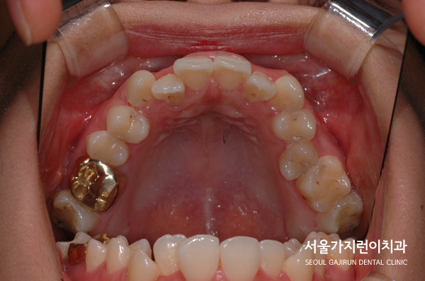 환자분의 경우 상악이 좁아 공간이 부족해 상악 치열이 좋지 않았는데요.