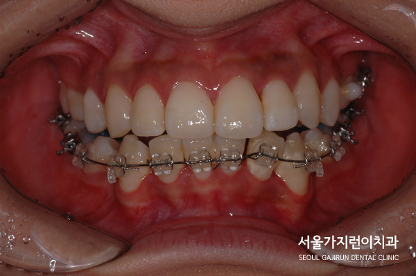 상악앞니의 돌출감이 심했기 때문에 상악의 경우 설측교정장치를 이용하고 하악의 경우 순측으로 진행하는 콤비교정을 진행했습니다. 돌출입 교정시에 이미 튀어나온 입에 튀어나오는 장치를 착용할 경우 교정기간 내내 입이 더 튀어나와보이는 증상으로 스트레스를 호소할 수 있었는데요. 이렇게 설측으로 진행하고 콤비교정으로 진행하면 합리적으로 치아교정을 마무리할 수 있습니다.