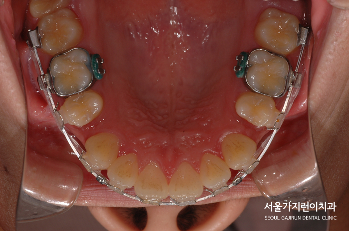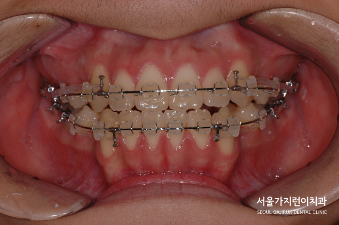 환자분의 경우 초기에는 상악 앞니를 후방으로 밀고 하악은 공간확보를 위해 정렬을 유도했는데요.